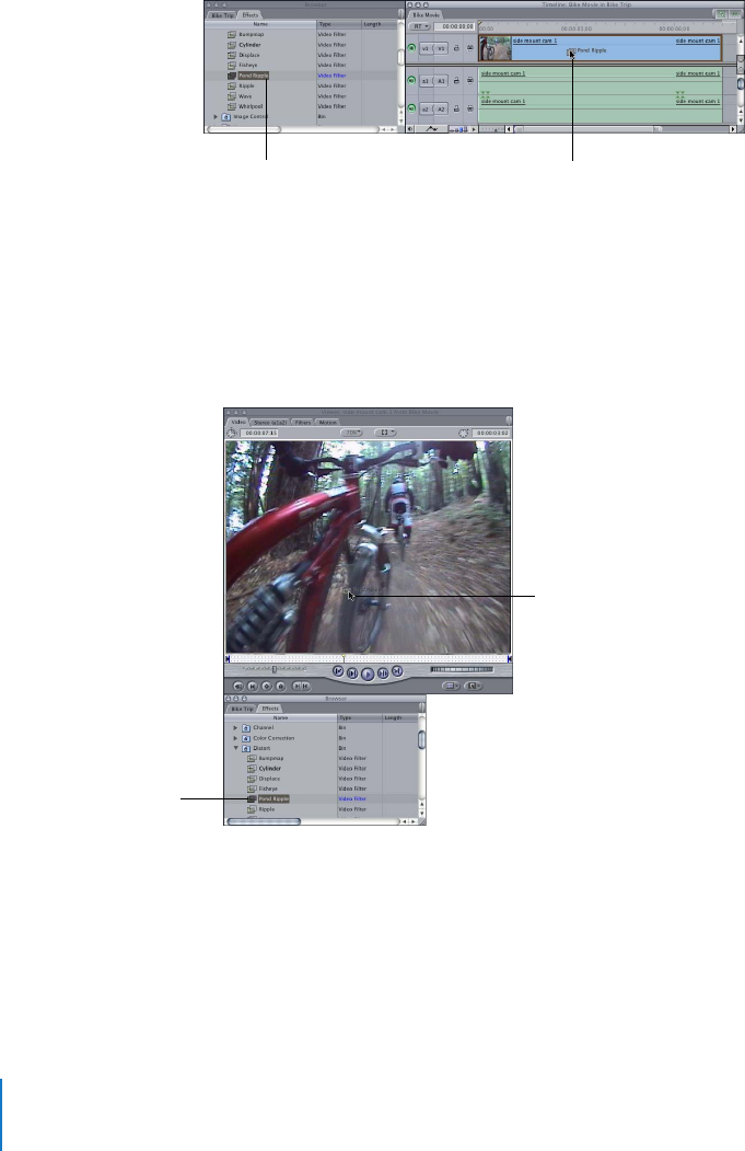 • Drag a filter from the Effects tab of the Browser directly into the Viewer.