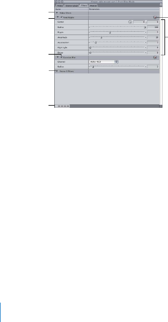 • Name bar: Each filter has a name bar that contains a disclosure triangle, on/off