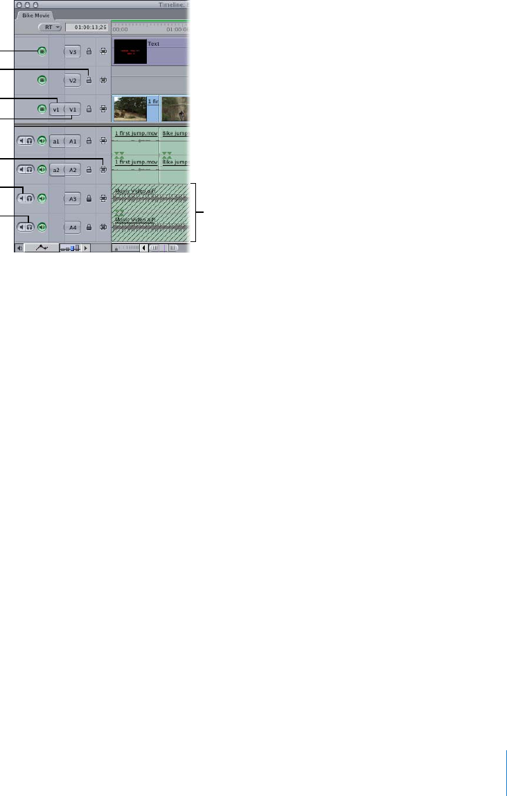 Destination controls, see Final Cut Express Help, Chapter 14, “Working in the Timeline.”