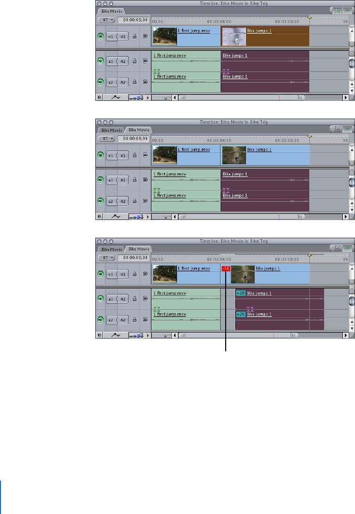 Final Cut Express HD keeps track of the resulting offset, displaying it as a timecode
