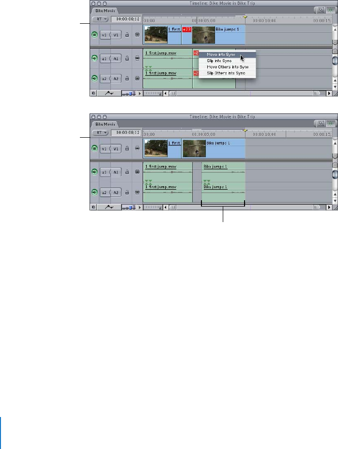 clips back into sync, see Final Cut Express Help, Chapter 19, “Advanced Editing and